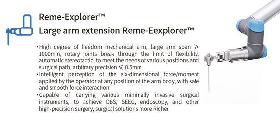 Q:How does Reme? to implement its functions inA:The Neurosurgical Navigation and Positioning System integrate image processing and surgical planning, automatic positioning and navigation, and a multi-functional surgical operating platform, which can assist surgeons to perform nearly 100 types of surgeries in 12 categories in a minimally invasive, precise, and efficient manner.
