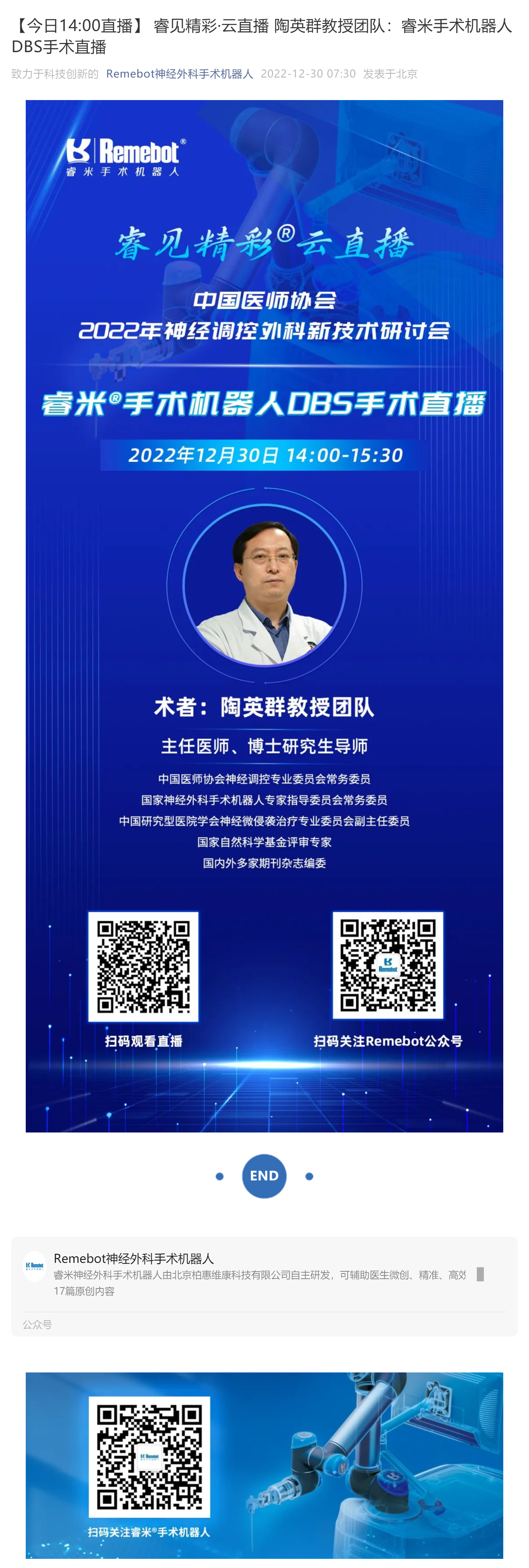 【今日14:00直播】 睿見(jiàn)精彩·云直播 陶英群教授團(tuán)隊(duì):睿米手術(shù)機(jī)器人DBS手術(shù)直播